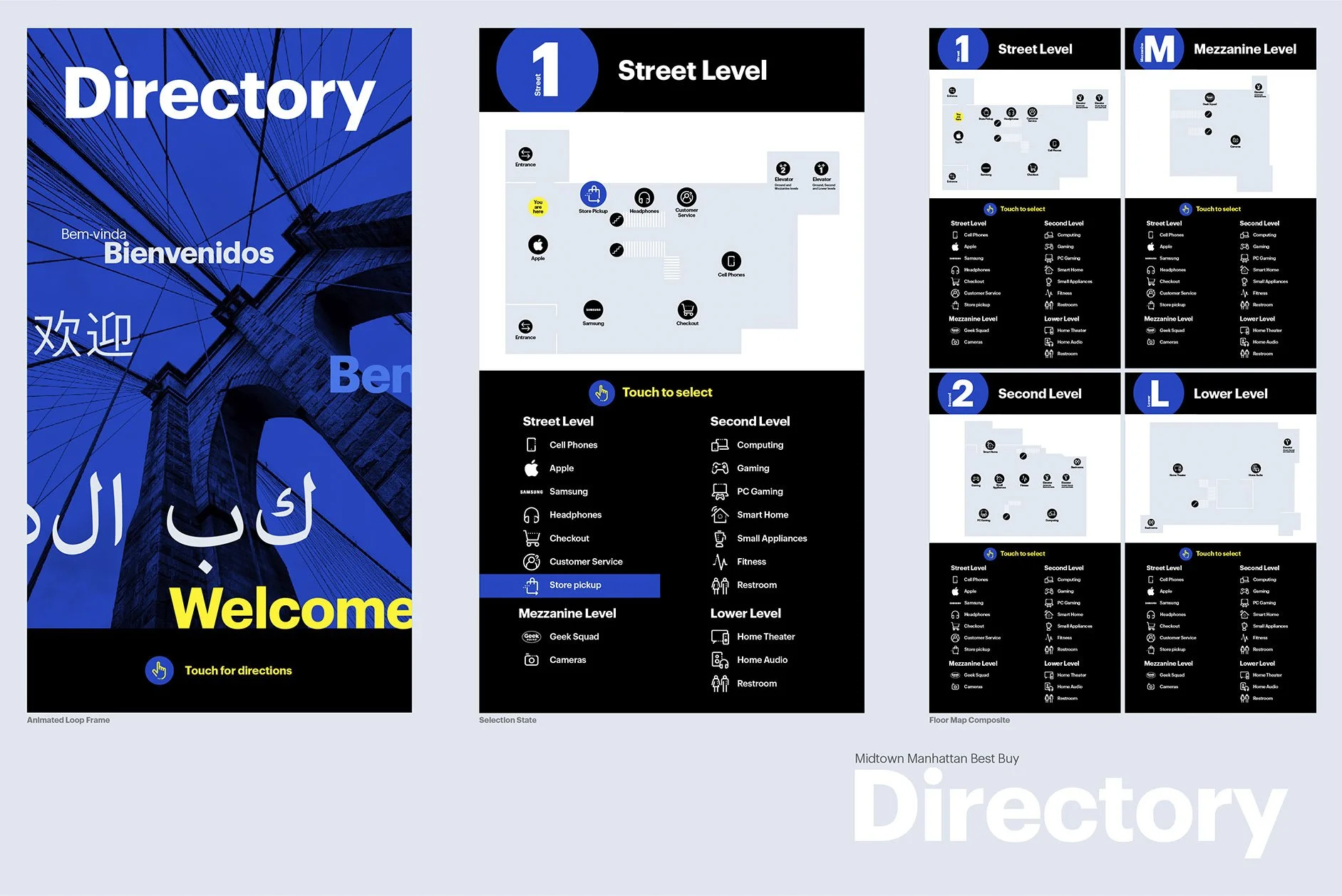Developed environmental graphics and directory design for Midtown Manhattan Best Buy store.